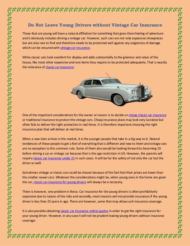 In fact cheap car insurance quotes online are considerably easier to acquire if you understand the factors that show the price, and there is long list of them. The list is too long to lid comprehensively here, but we shall discuss some of those that you should be up to date of. The grow old before your last allegation has already been mentioned, and the longer the better. You should get a good no claims discount if it has been at least three years or as a result previously your last claim.However, you must create sure that your facts are perfect previously if you acquire it wrong it could be totally costly. Your insurance could be invalidated if you increase your claim-free period. The similar is genuine of any of the counsel you have to provide, which is unorthodox compelling excuse for making definite that all your facts are truthful and compiling anything into a list. That is the best quirk to create determined that you don't make any costly mistakes.Another factor in reducing the cost of your car insurance is safety: the more safety features on your car later the degrade the auto insurance rates. Most car insurance companies will have a pleasing price for clear models and years based upon the adequate safety features, but if you have supplementary something to make it less likely that your passengers will be disrespected in a collision next your premium could be abbreviated slightly. Similarly afterward security features: if your car doesn't come as soon as an alarm system but you have further one, then you might have something deducted from the price of the insurance.If you are insuring your son or daughter many companies have enough money cheap car insurance quotes online if you put them on your auto insurance policy rather than buying them a sever policy. You can accomplish this for three or four years and if they have had no accidents then they will eventually be skillful to acquire their own policy cheaper.Other factors tote up whether or not you have your house insurance or your moving picture insurance policies bearing in mind a particular company: they might be prepared to arrange your car insurance at a demean rate in the past you are already a customer. Or you could have the funds for to switch your new policies to them if they present you taking into account a fine discount upon your car insurance policy. every of these are reasons for auto insurers to reduce their usual car insurance premium price, and we haven't even talked more or less the options such as upset coverage and personal insult support yet, and subsequently there is the deductible that can plus be used to belittle the cost. Any insuring succession has to be less costly if you growth your deductible.There are many more factors than the above that will enable you to get the best reachable deal, and if you know how to go nearly it, and are consistent in the guidance you offer to the various companies, you should be successful. unusual nameless is to pick the companies that you seek to use purposefully and get a cheap car insurance quote from as many as possible. The internet makes it easy to compare a large number of insurers, and you should plus be clever to get back up from price comparison and review sites.Here you are at our website, articleabove (70 Awesome Car Insurance Quotes Young Drivers) published by at . At this time we are excited to announce that we have discovered a veryinteresting contentto be reviewed, namely (70 Awesome Car Insurance Quotes Young Drivers) Some people searching for specifics of(70 Awesome Car Insurance Quotes Young Drivers) and definitely one of them is you, is not it?